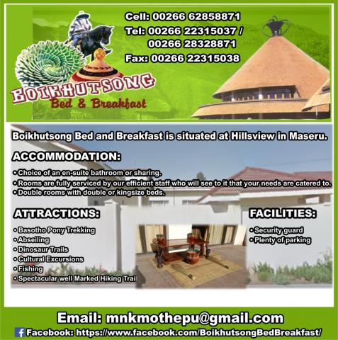 Boikhutsong Bed and Breakfast is situated at Hillsview in Maseru.