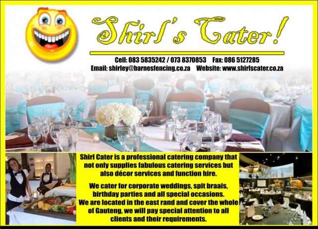 Shirl Cater is a professional catering company that not only supplies fabulous catering services but also décor services and function hire.