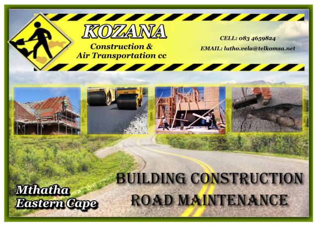 Wavelengths 1069 cc t/a Conjwa ConstructionBuilding Contractors Mthatha (Eastern Cape) August 6, 2015Building Contractors: * Building of Clinics, Schools & Community Halls etc. Tel/Fax: 047 5313992 Cell: 072 0959160 Email: conjwabdm@vodamail.co.za