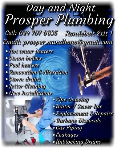 Victor.com PlumbingPlumbing Randburg (Gauteng) October 27, 2016Blocked drains Bath renovations Leak repairs Septic tanks expert French drains expert Storm water drain Subsoil drainage Geberit expert Re pipes and imports Any job big or small we are here to assist you quick responses and fast service Cell: 076 027...